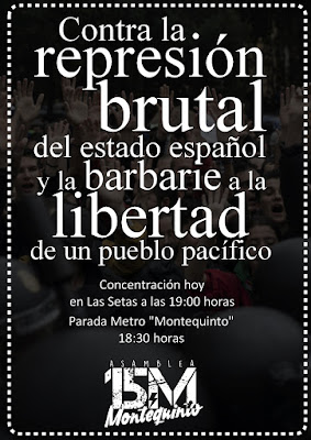 Por lo tanto, manifestamos nuestra repulsa contra la represión y la violencia policial ESTA TARDE A LA 19H EN LAS SETAS.