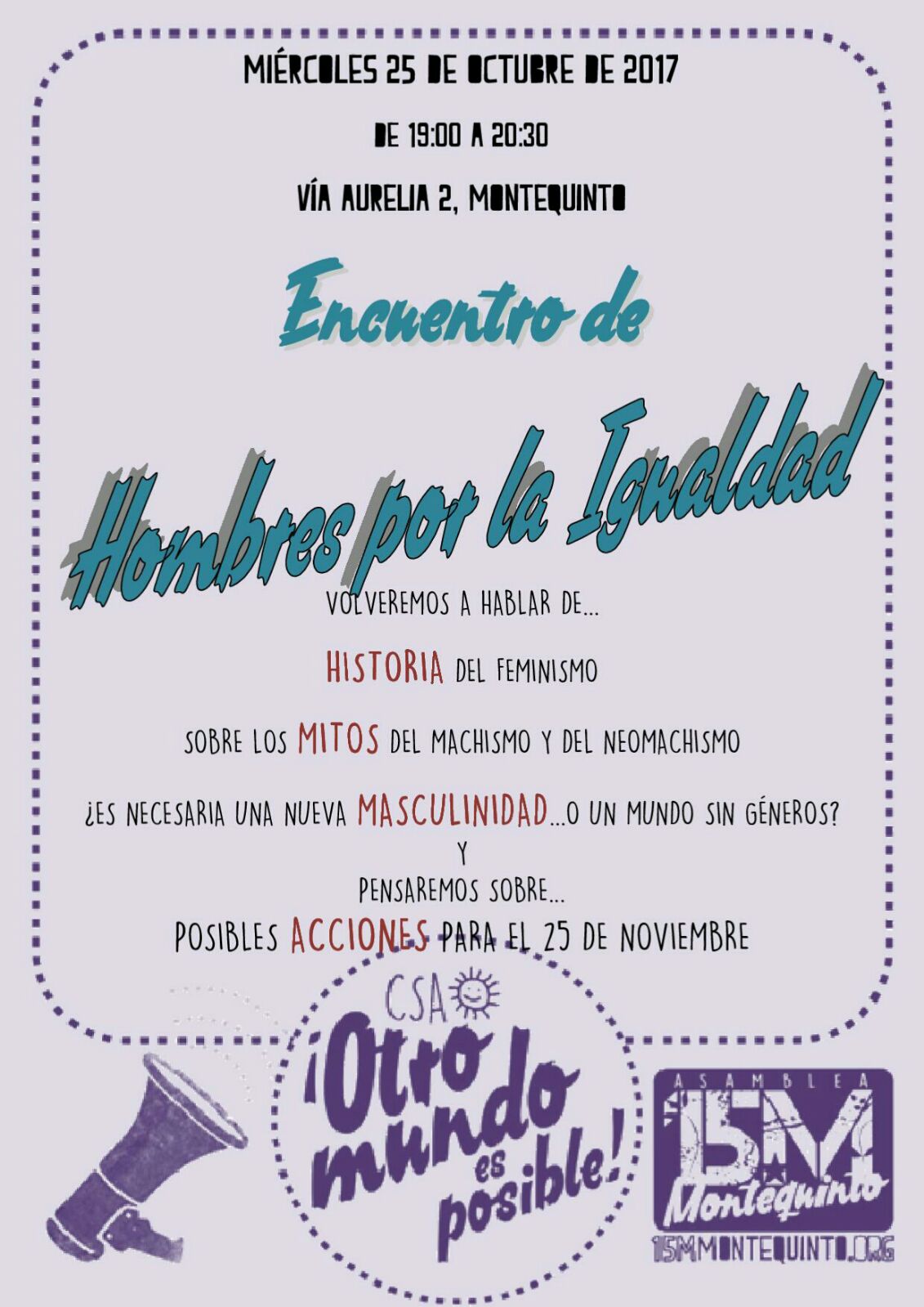 Tal y como acordamos en el último encuentro se ha convocado una nueva reunión del grupo de Hombres por la Iualdad de nuestra asamblea, por lo que se os invita a participar en la misma.