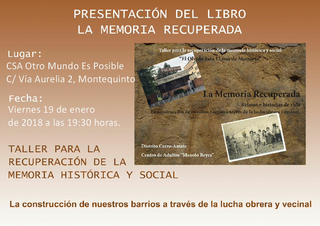 19:30h el CSA Otro Mundo Es Posible acogerá la presentación del libro "La